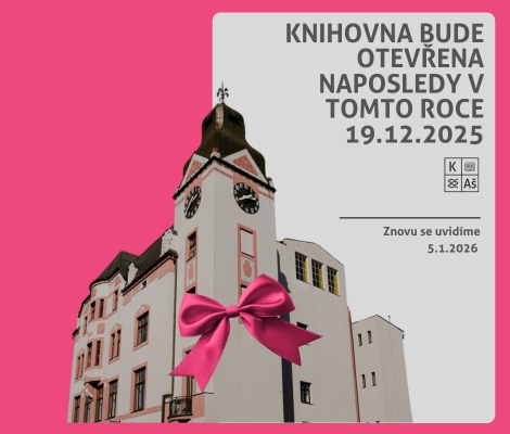 V PONDĚLÍ 10.11.2025 bude oddělení pro dospělé z důvodu konání akce otevřeno pouze od 14:00 do 17:30. Otevírací doba oddělení pro děti bude beze změny.
