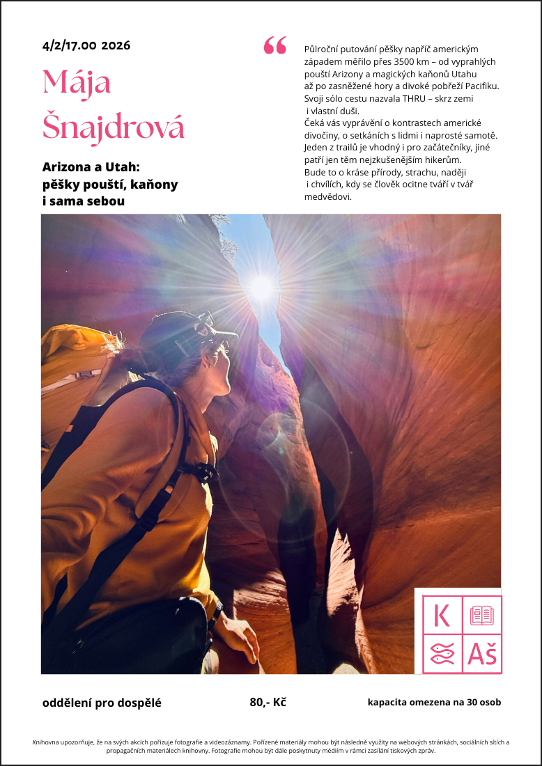 4.2.2026 od 17:00 hod v oddělení pro dospělé / vstup 80,-Kč - lístky lze zakoupit již nyní v předprodeji / kapacita omezena na 30 osob